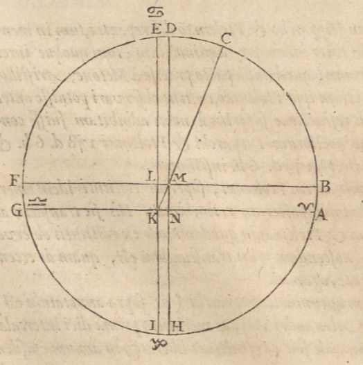 This is Longomontanus’ diagram concerning eccentricity. The circle is the Sun’s orbital path around Earth. However, Earth is not in the center (M) it is offset to point N. So the path of the Sun while being perfectly circular the days between the equinoxes are not equal.